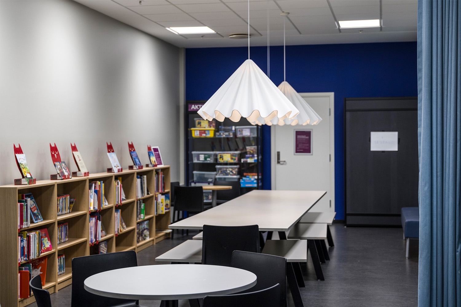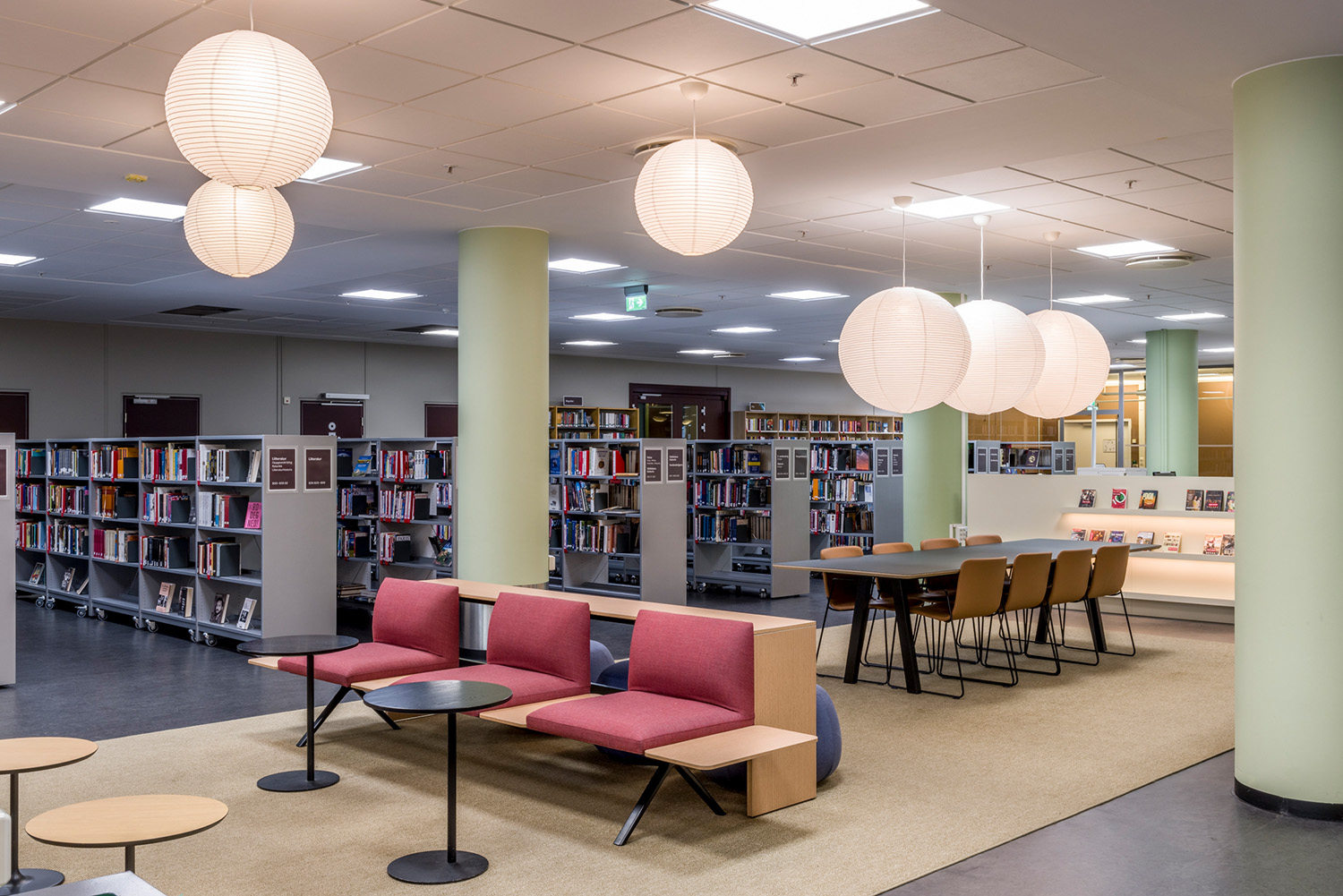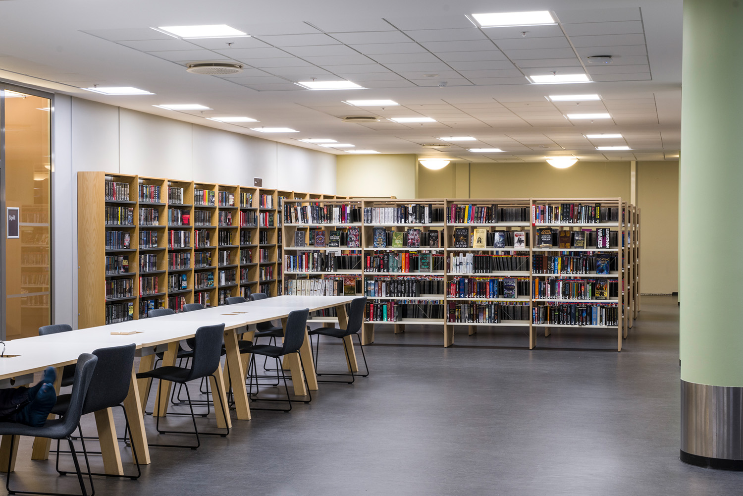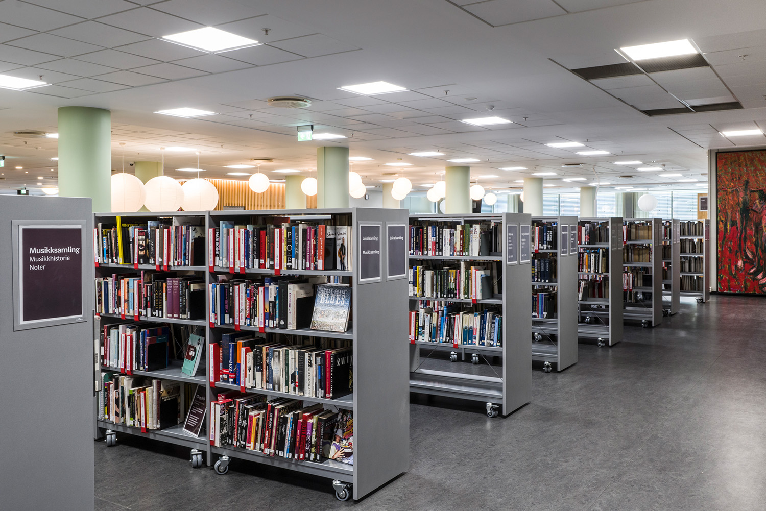 Die Bibliothek von Asker ist ein modernes Wahrzeichen von Asker und ein lebendiges Zentrum für Bildung, Inspiration und Gemeinschaft. Ihre zentrale Lage mit großen Glasfassaden lädt Besucher auf natürliche Weise zum Eintreten ein und macht die Bibliothek zu einem wichtigen und beliebten Treffpunkt. Nach einer umfassenden Modernisierung der Räumlichkeiten mit einer neuen Raumaufteilung, neuen Farben und dem Austausch der meisten Regale präsentieren sich die Räumlichkeiten nun in einer zeitgemäßen und einladenden Atmosphäre. Diese Modernisierung zieht weiterhin neue Besucher in die gemütlichen Räumlichkeiten.