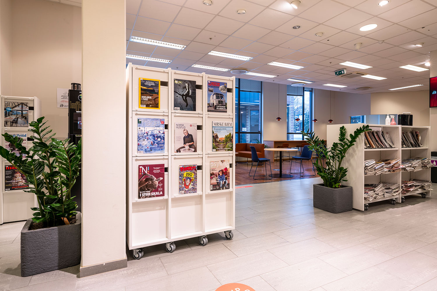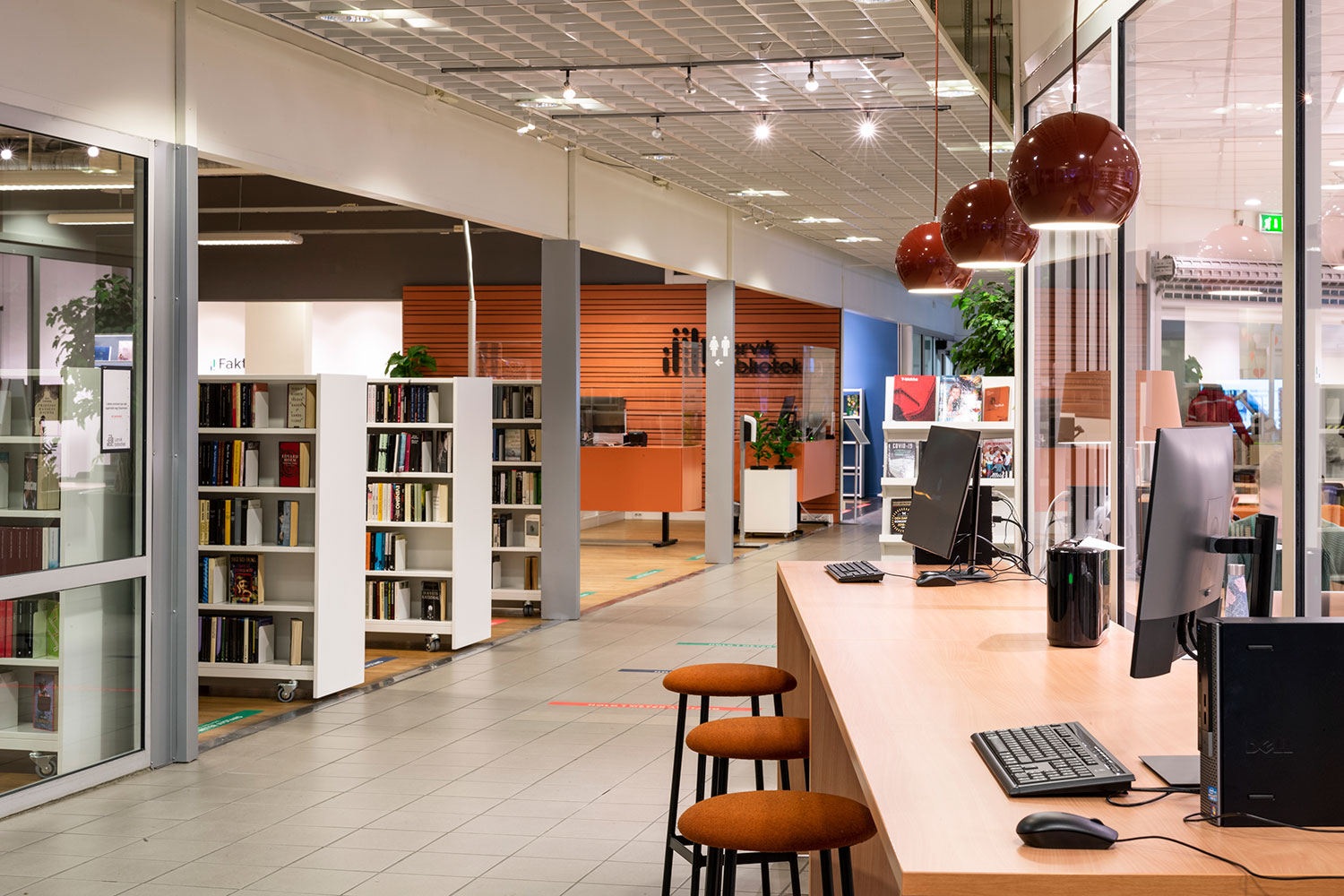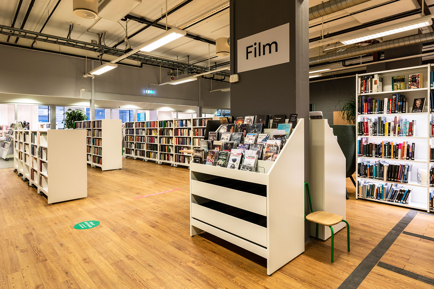 Der Bibliothek ist es gelungen, in einigen Teilen kompaktere Bereiche mit mehr Freiflächen in anderen Teilen der Bibliothek zu kombinieren, wobei der offene Raum größere Veranstaltungen und Versammlungen ermöglicht. Es gibt einen Raum, der speziell für Schulklassen und andere organisierte Aktivitäten für Kinder und Jugendliche während des Tages bestimmt ist. Für Studenten gibt es eine separate Abteilung mit einem kleinen Lesesaal und zwei Gruppenräumen.