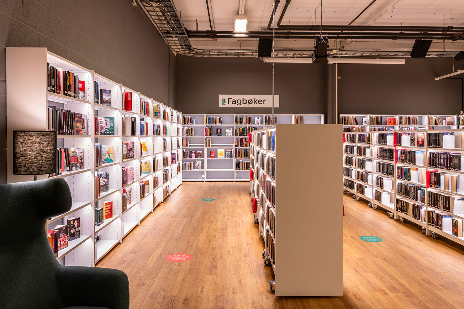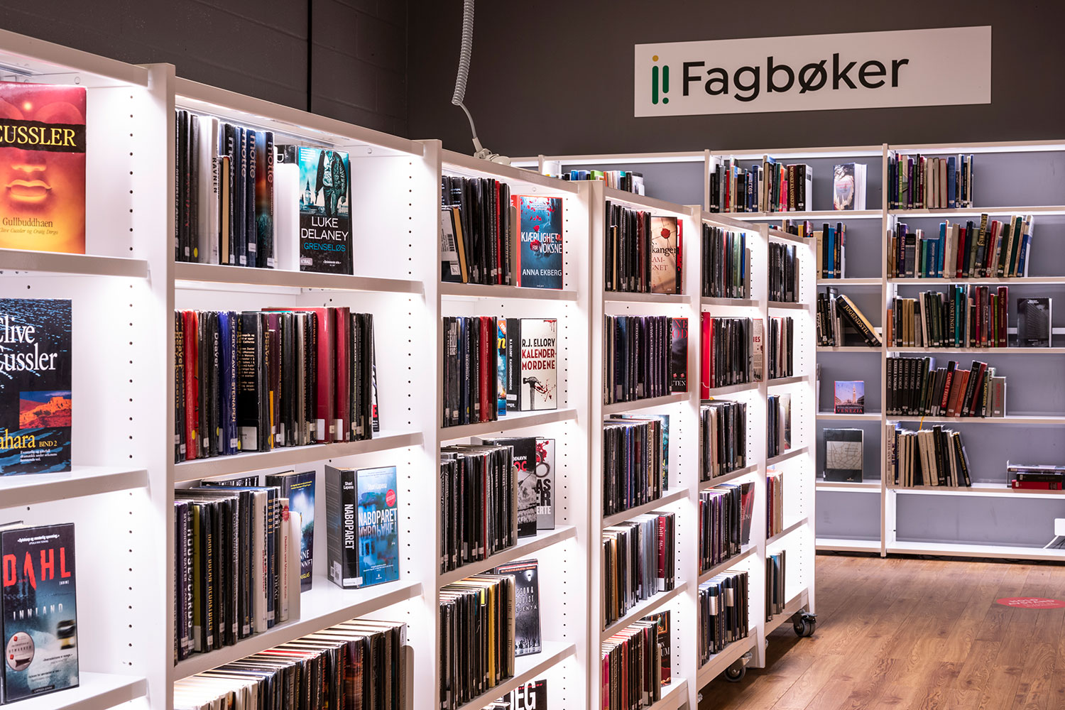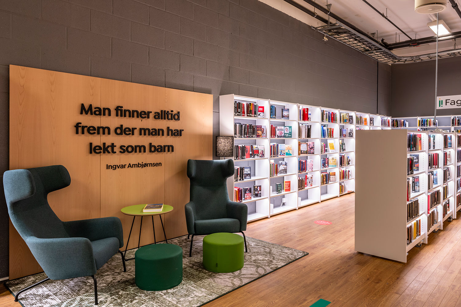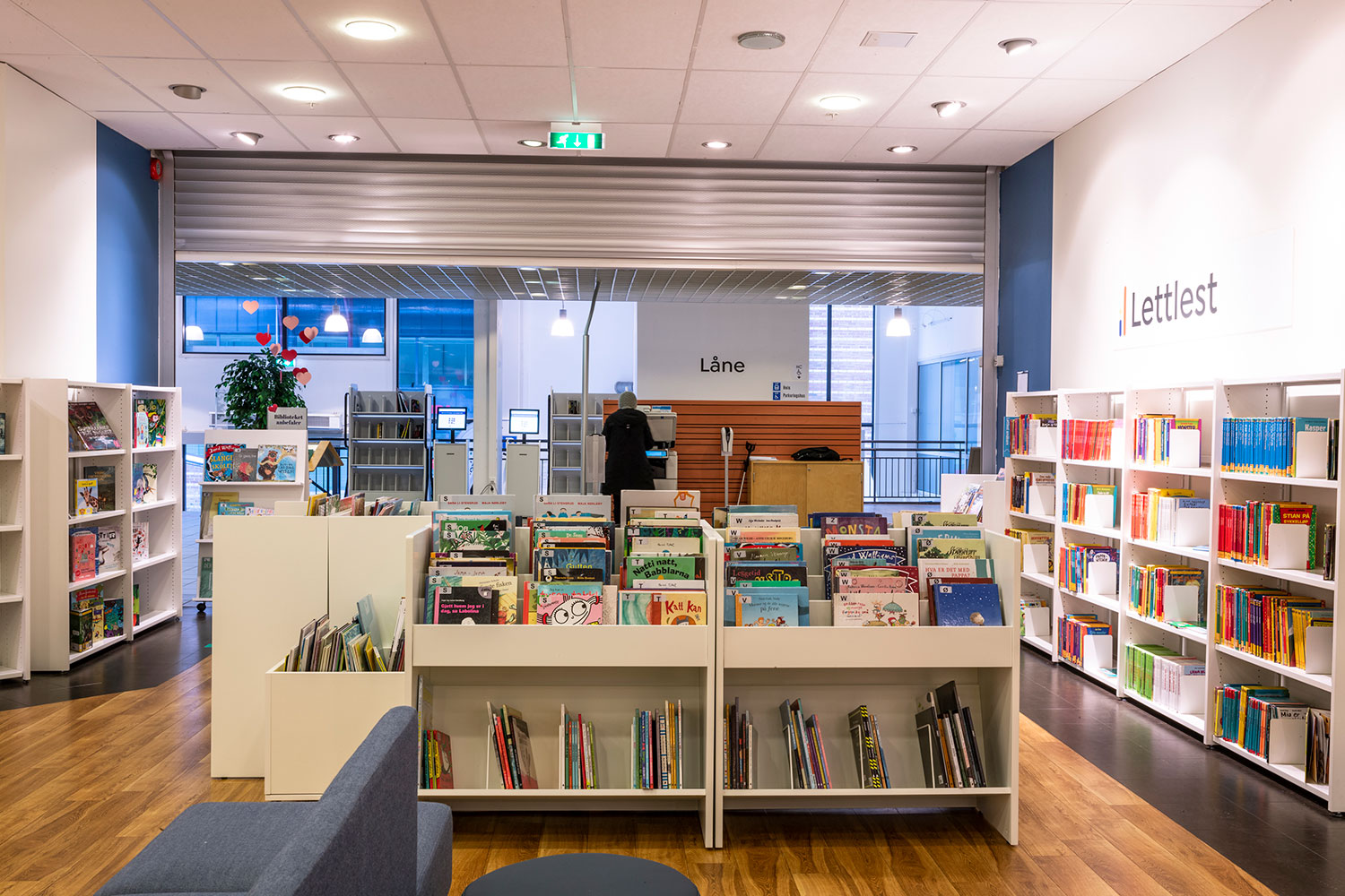 Der Bibliothek ist es gelungen, in einigen Teilen kompaktere Bereiche mit mehr Freiflächen in anderen Teilen der Bibliothek zu kombinieren, wobei der offene Raum größere Veranstaltungen und Versammlungen ermöglicht. Es gibt einen Raum, der speziell für Schulklassen und andere organisierte Aktivitäten für Kinder und Jugendliche während des Tages bestimmt ist. Für Studenten gibt es eine separate Abteilung mit einem kleinen Lesesaal und zwei Gruppenräumen.