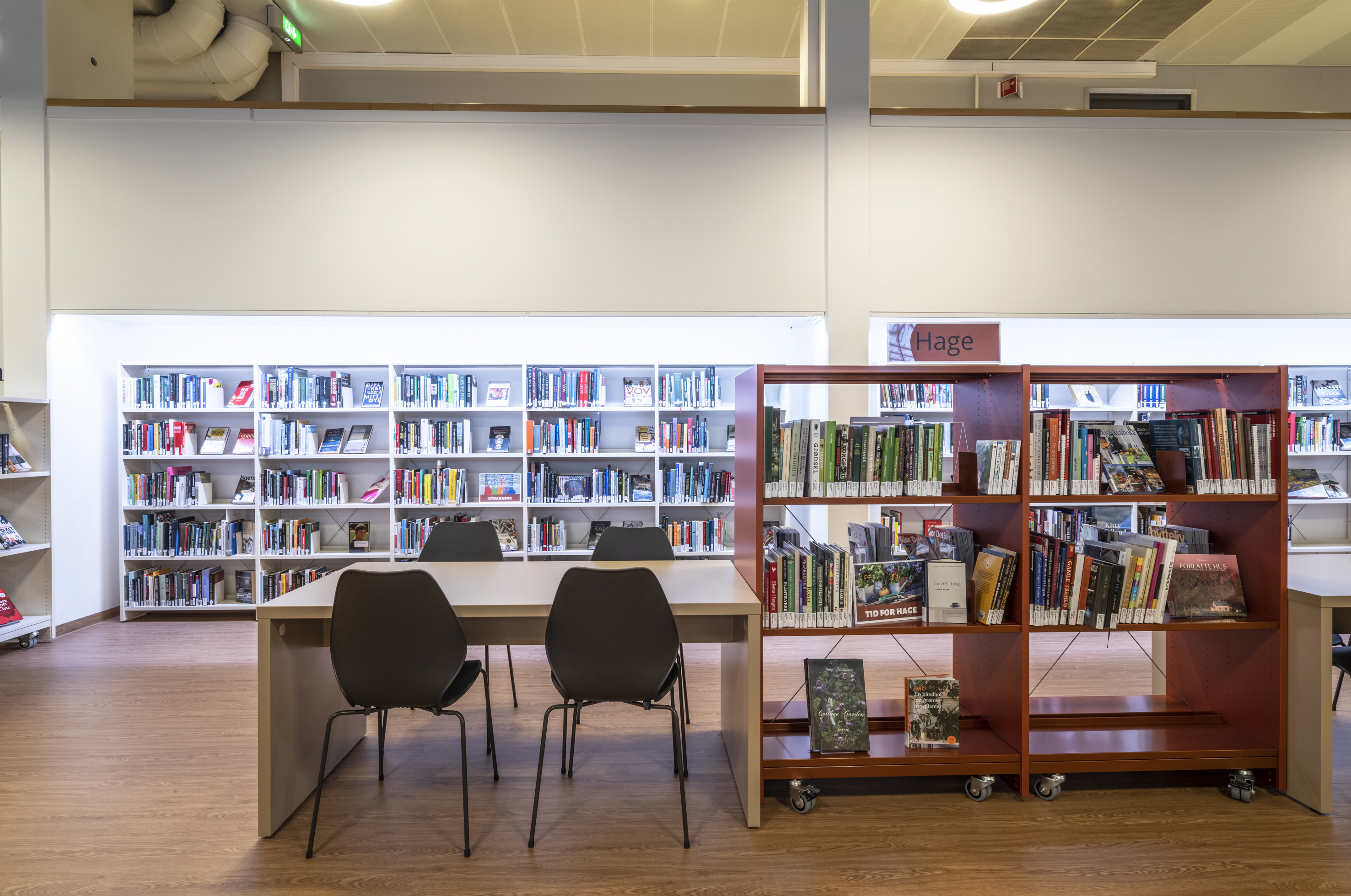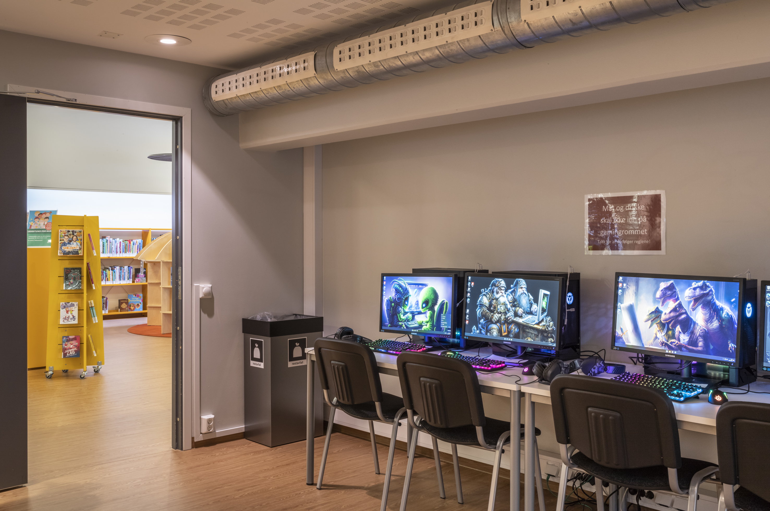 Die Bibliothek der Gemeinde Ullensaker befindet sich in der Stadt Jessheim. Am 5. Januar 2023 wurde sie nach einer umfangreichen Renovierung offiziell wiedereröffnet, wobei alle Möbel und Regalsysteme erneuert und in Schattierungen gefärbt wurden, die mit den Grundelementen der recycelten Räumlichkeiten harmonieren.