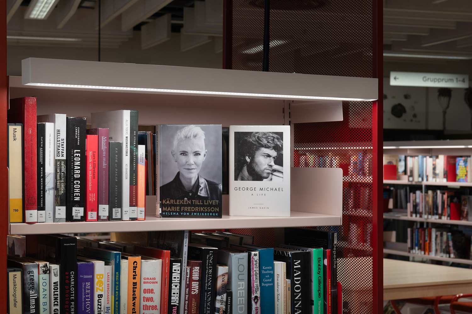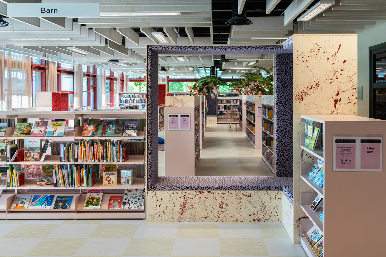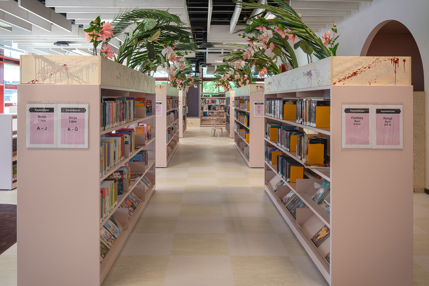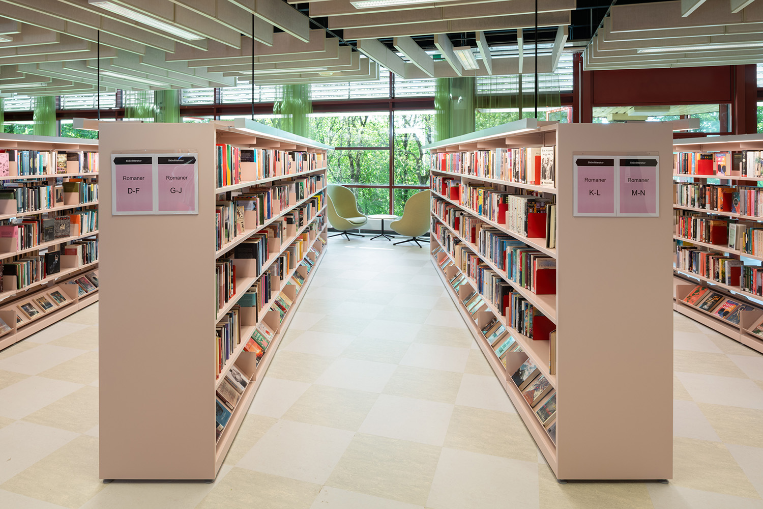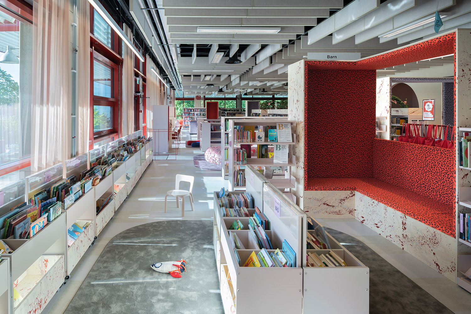 Die Bibliothek in Västra Frölunda ist ein zentraler Bestandteil des Frölunda Kulturzentrums. Ihre flexiblen, modularen Regale bieten Platz für verschiedene Medien wie Bücher, Zeitschriften und Multimedia. Die Bibliothek ist als integrativer Lernort konzipiert, in dem Besucher in unterschiedlichen Bereichen – darunter ruhigen Arbeitsplätzen, Gruppenräumen und Kinderzonen – entdecken und lernen können.