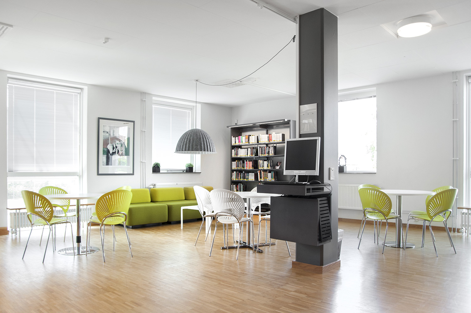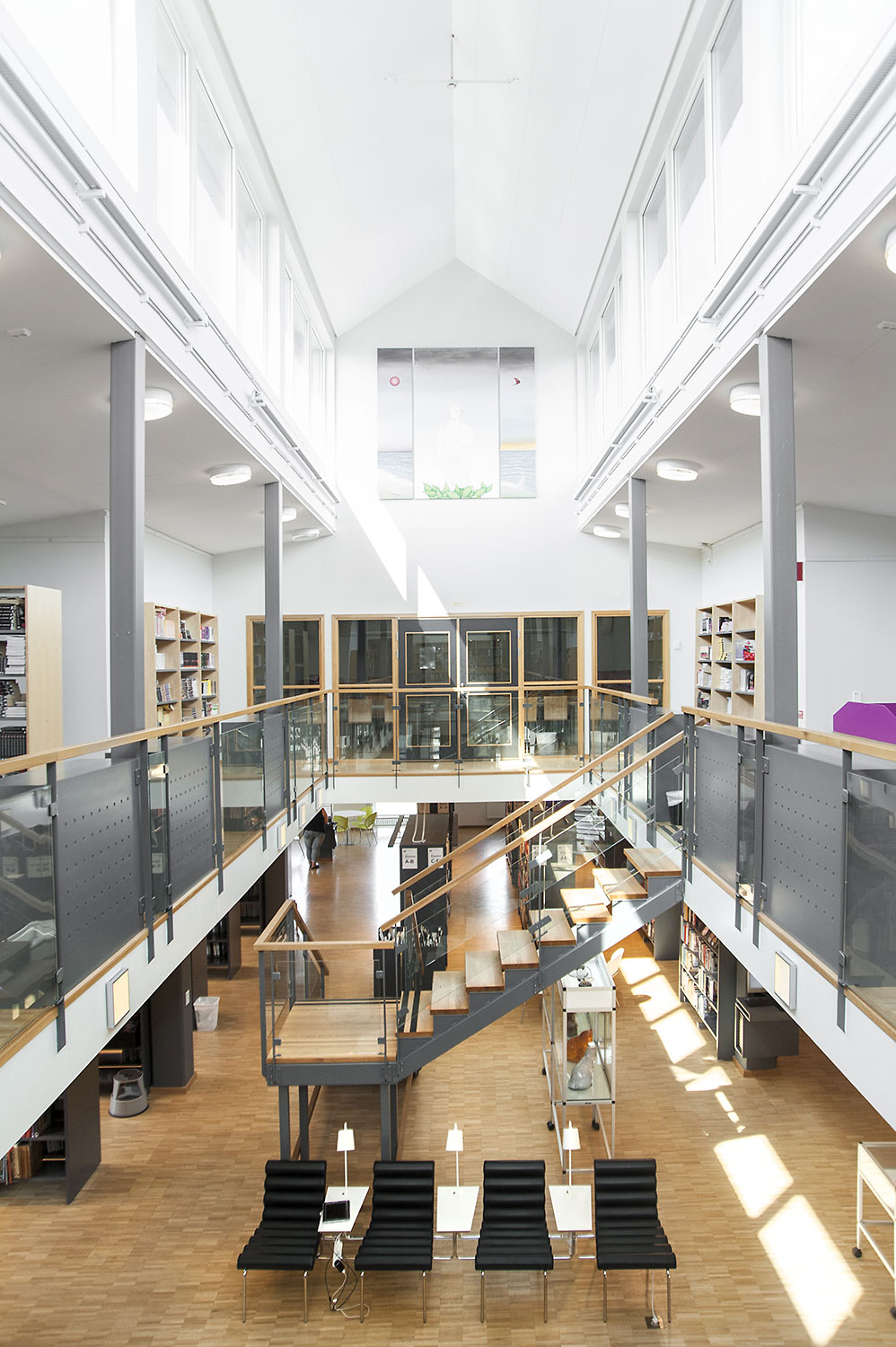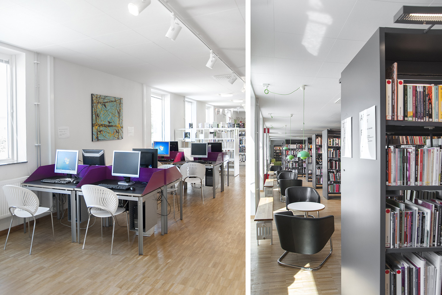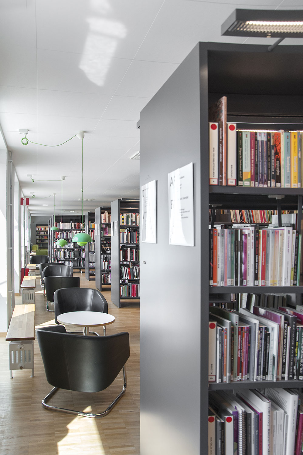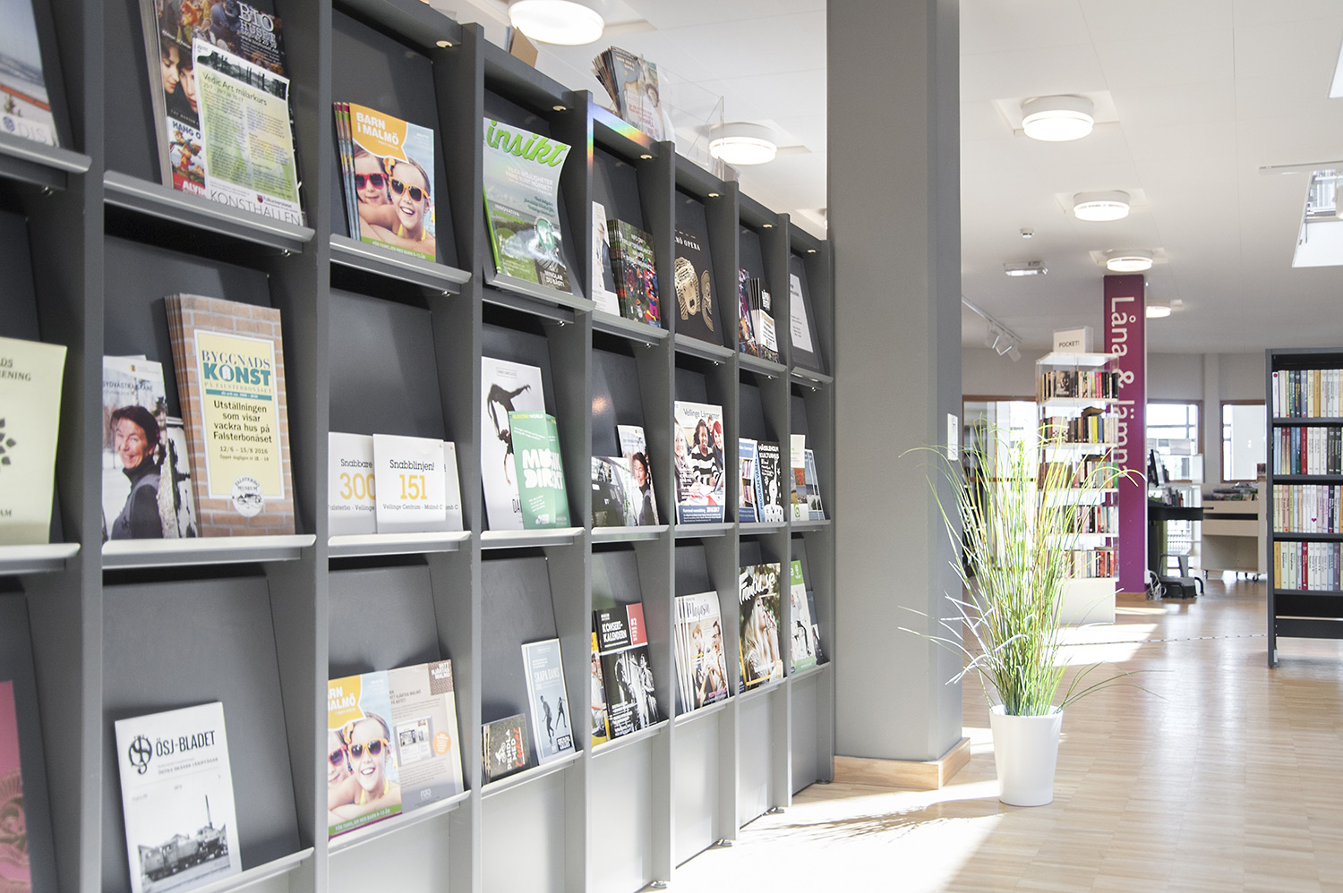 Diese Bibliothek ist eine integrierte Gymnasial- und öffentliche Bibliothek an der Höheren Schule für Gesundheit in Vellinge. Sie bietet Raum und Gelegenheit sowohl zum Lernen als auch zur Erholung und ist somit ein ausgezeichneter Arbeitsraum für die Schüler und die Öffentlichkeit.