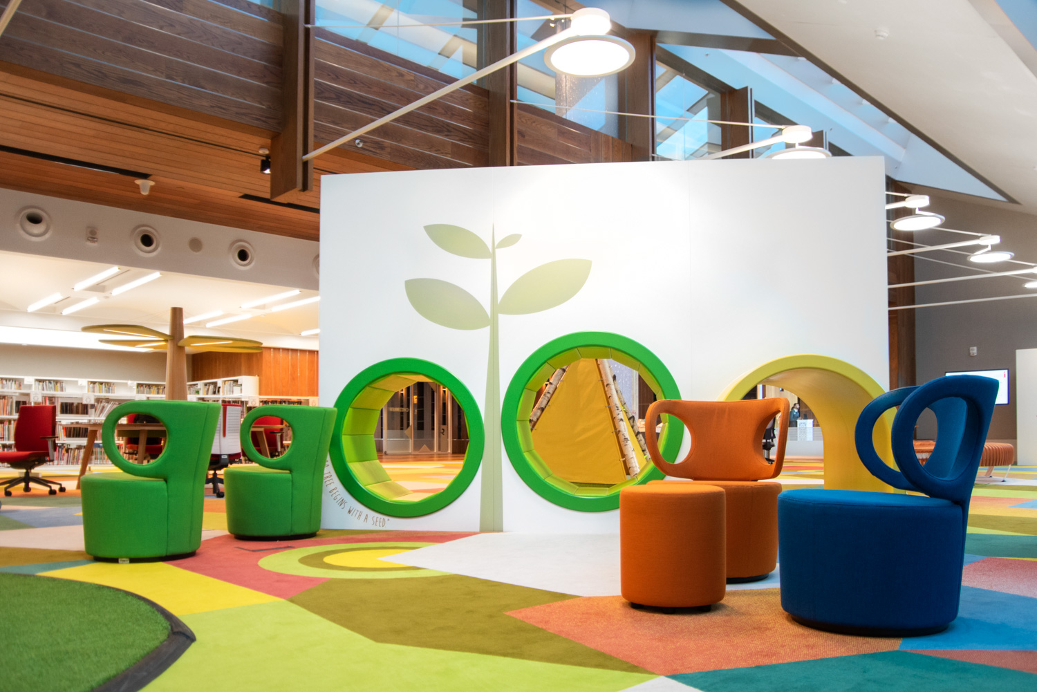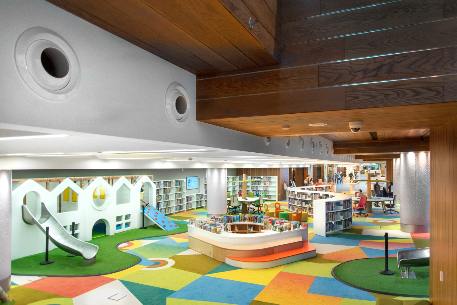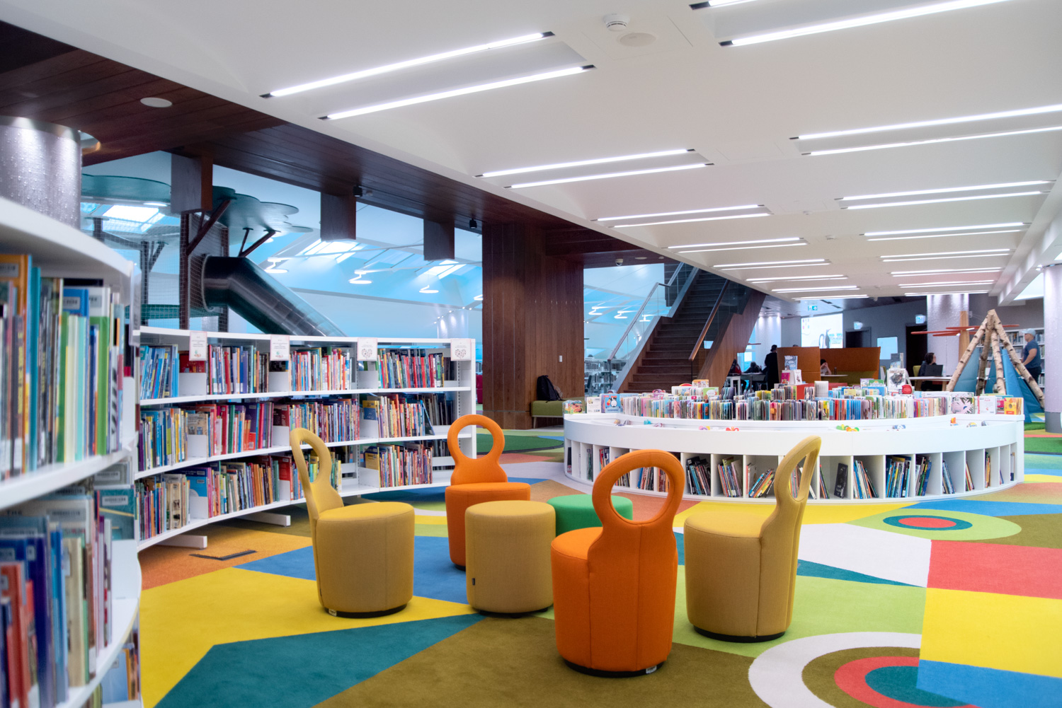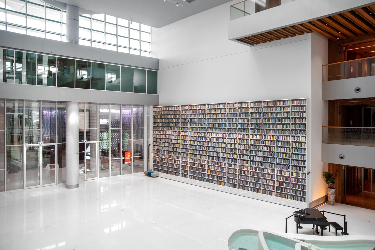 Die Einrichtung beherbergt neun separate Bibliotheken, die sich allen Bereichen widmen, von Medien und Kunst bis hin zu Geschäftstiteln, internationalen Zeitschriften, Karten und Atlanten, Büchern für Kinder und Jugendliche sowie einer speziellen Sammlung von Archivmaterial. Hinzu kommt ein Amphitheater im Innen- und Außenbereich, ein Literaturmuseum und Ausstellungsraum, ein Konferenzzentrum, ein zweistöckiges Café und ein Geschenk.