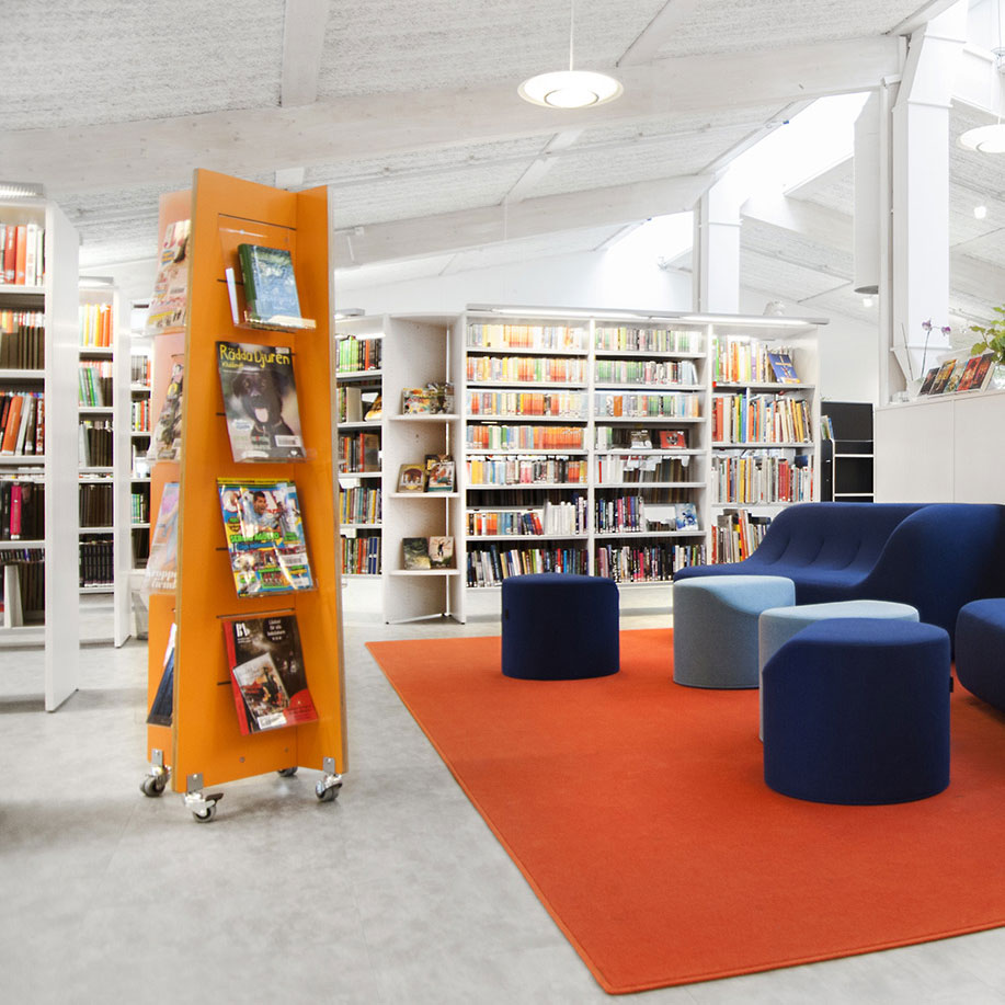 Hier geht es um laminiertes Birkensperrholz, auf dem Foto mit sichtbaren Kanten. Damit lassen sich eine strapazierfähige Oberfläche und eine langlebige Konstruktion erzielen. Ideal für die meisten stark beanspruchten Bibliotheksumgebungen!