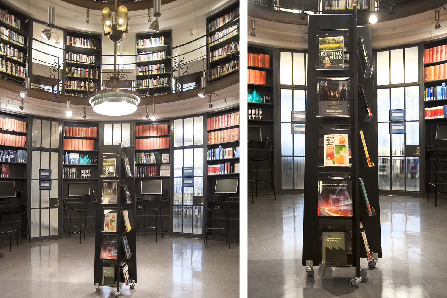 Vierseitiger Präsentationsturm zur Ausstellung von Büchern, Zeitschriften usw.