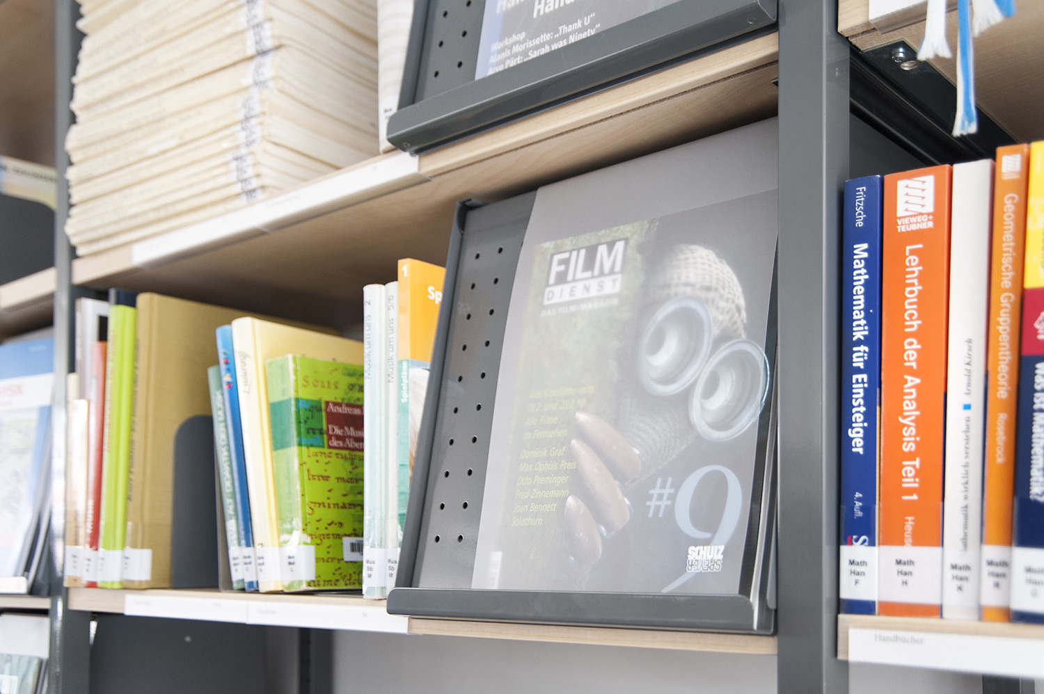 Zeitschriftenboxen für Fachböden bis 250 mm. Präsentiert Zeitschriften dem Besucher in einem einfachen Lesewinkel.