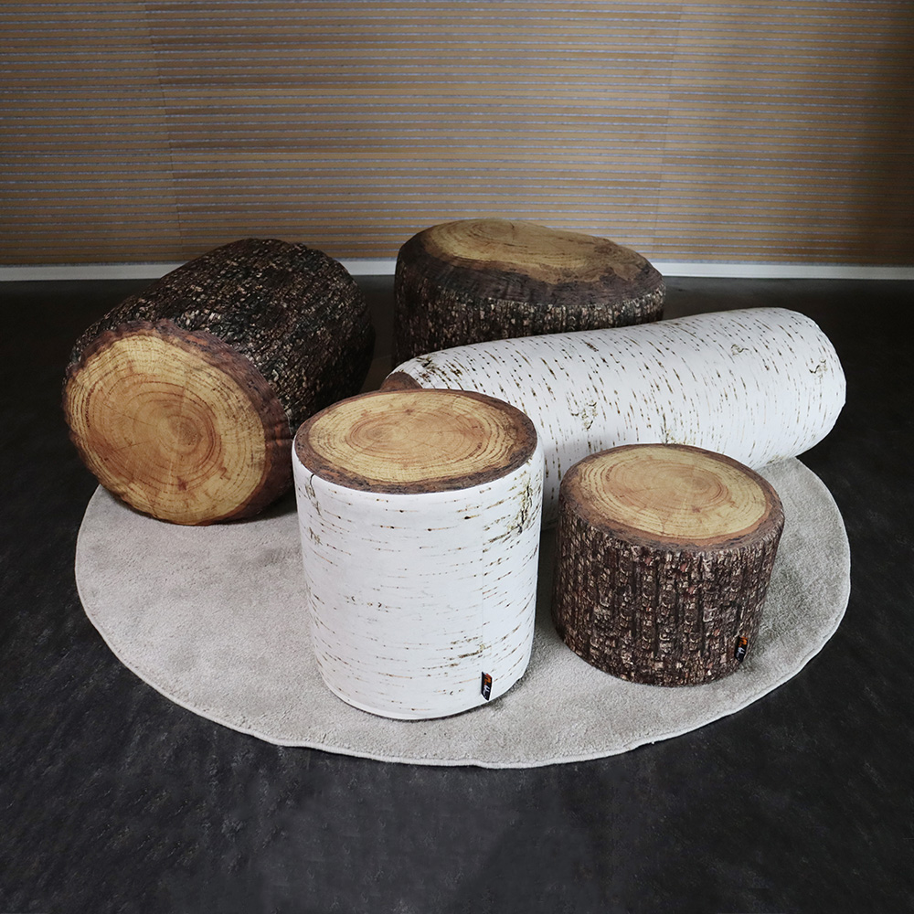 Die Puffs sind mit einem dicken, samtig weichen Stoff mit fotorealistischem Digitaldruck mit einem erstaunlichen 3D-Effekt für von der Natur inspirierte Umgebungen gepolstert.
