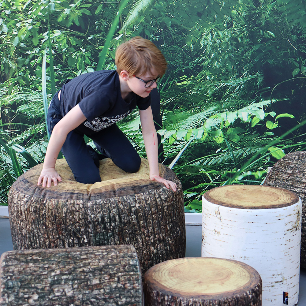 Die auffälligen Ragnar Tree Puffs sind dekorative und große Sitzgelegenheiten, die überall in der Bibliothek eingesetzt werden können. Die Kinder werden sie lieben und die Erwachsenen auch. Und sie werden auch im Jugendbereich einfach perfekt sein.