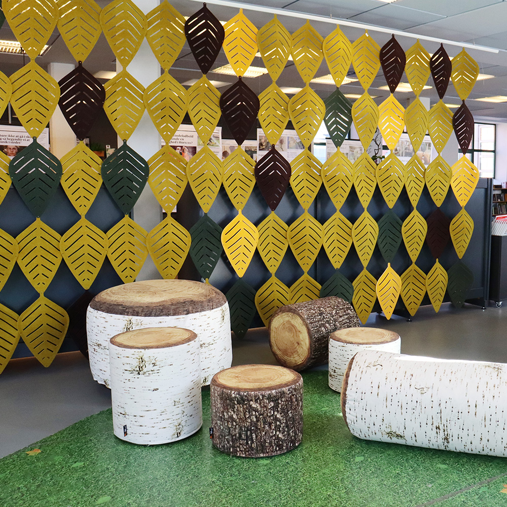 Die auffälligen Ragnar Tree Puffs sind dekorative und große Sitzgelegenheiten, die überall in der Bibliothek eingesetzt werden können. Die Kinder werden sie lieben und die Erwachsenen auch. Und sie werden auch im Jugendbereich einfach perfekt sein.