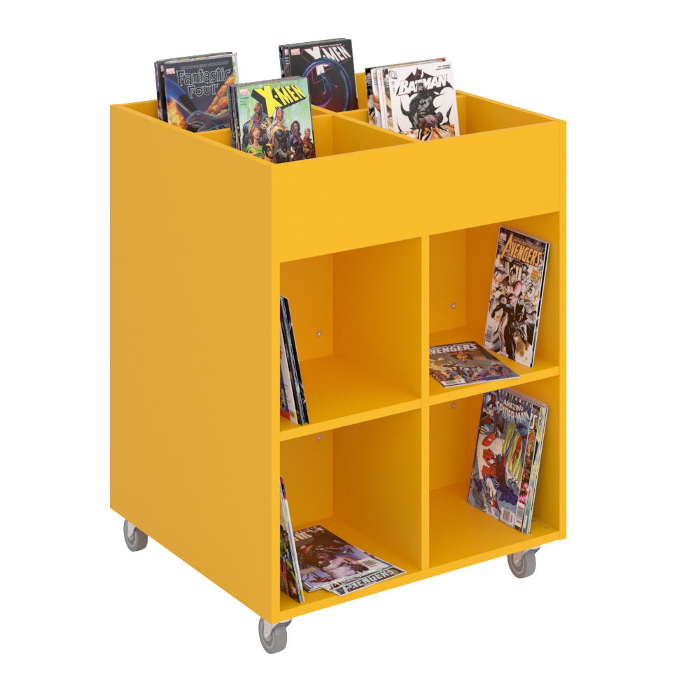 Je nach Höhe ist er geeignet für Kinder und Erwachsene und kann so in allen Bereichen der Bibliothek eingesetzt werden.