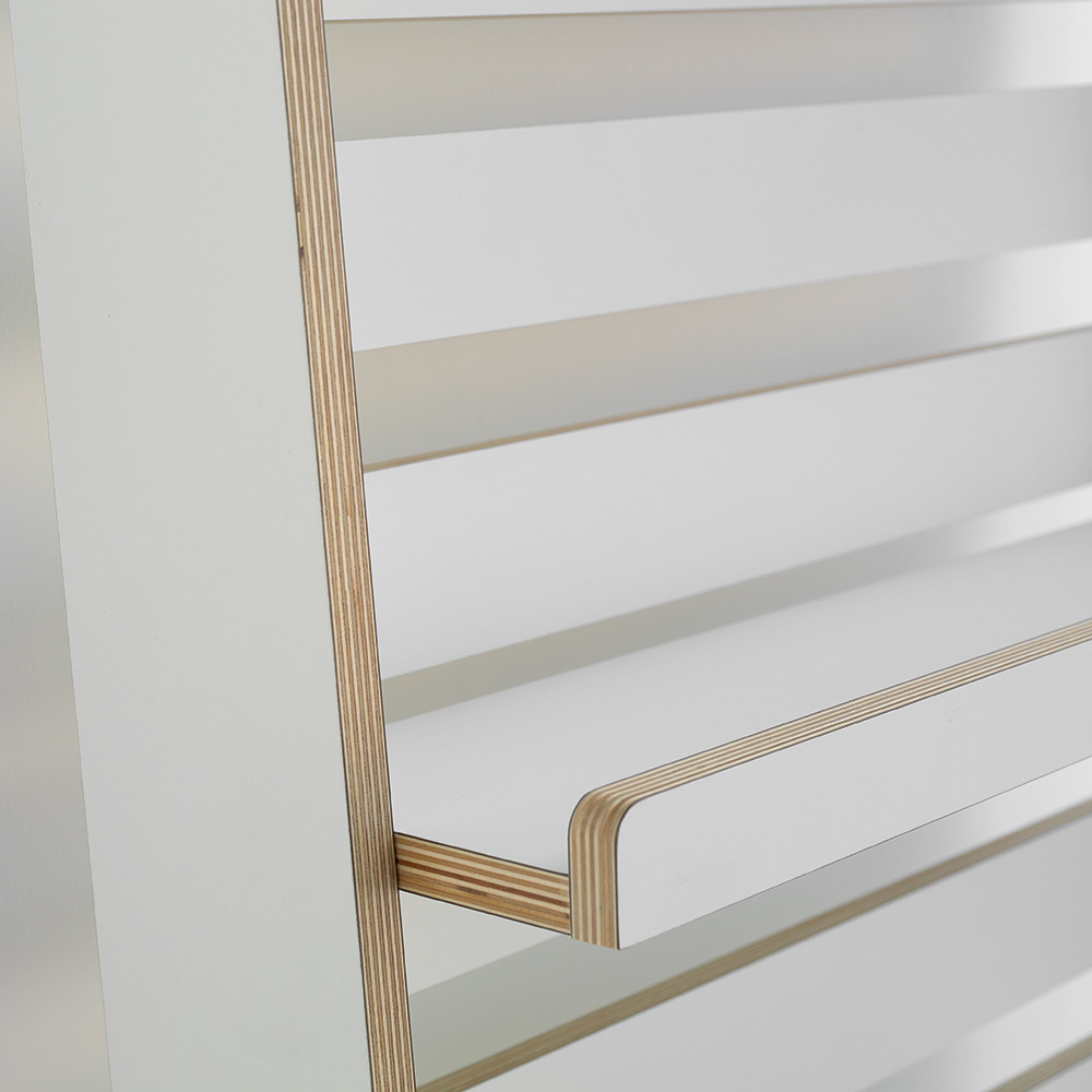 Der Abstand der Fachböden lässt sich leicht ändern, die Fachböden können versetzt oder nach Bedarf auch ganz entfernt werden.
