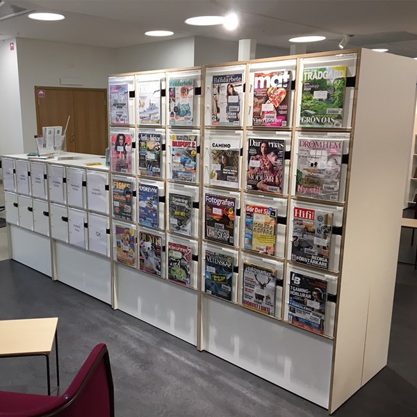 Schlaue Präsentation und Aufbewahrung von Zeitschriften und anderen Titeln. Die Schranktüren haben eine Acrylfrontabdeckung; großzügige Ausstellungstiefe (auch ideal für etwas dickere Magazinen).