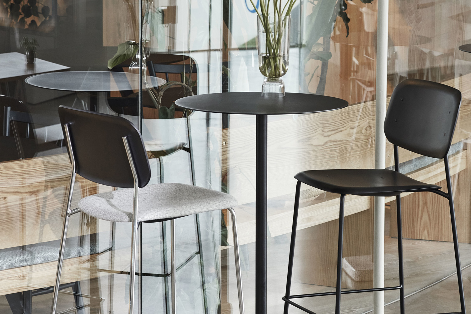 Soft Edge 90/91/95 ist in zwei Größen und in einer Vielzahl von Farben erhältlich. Der Barhocker ist auch mit gepolstertem Sitz erhältlich.