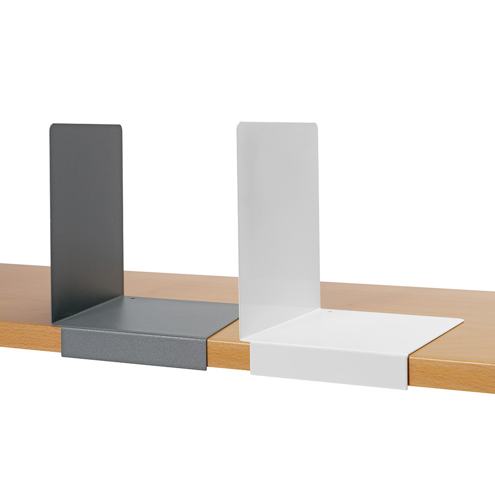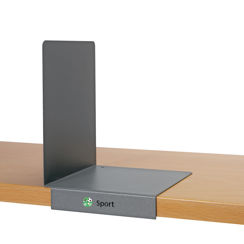 Die Bücherstütze bleibt stabil an ihrem Platz und die Vorderkante dient zur praktischen Beschilderung.