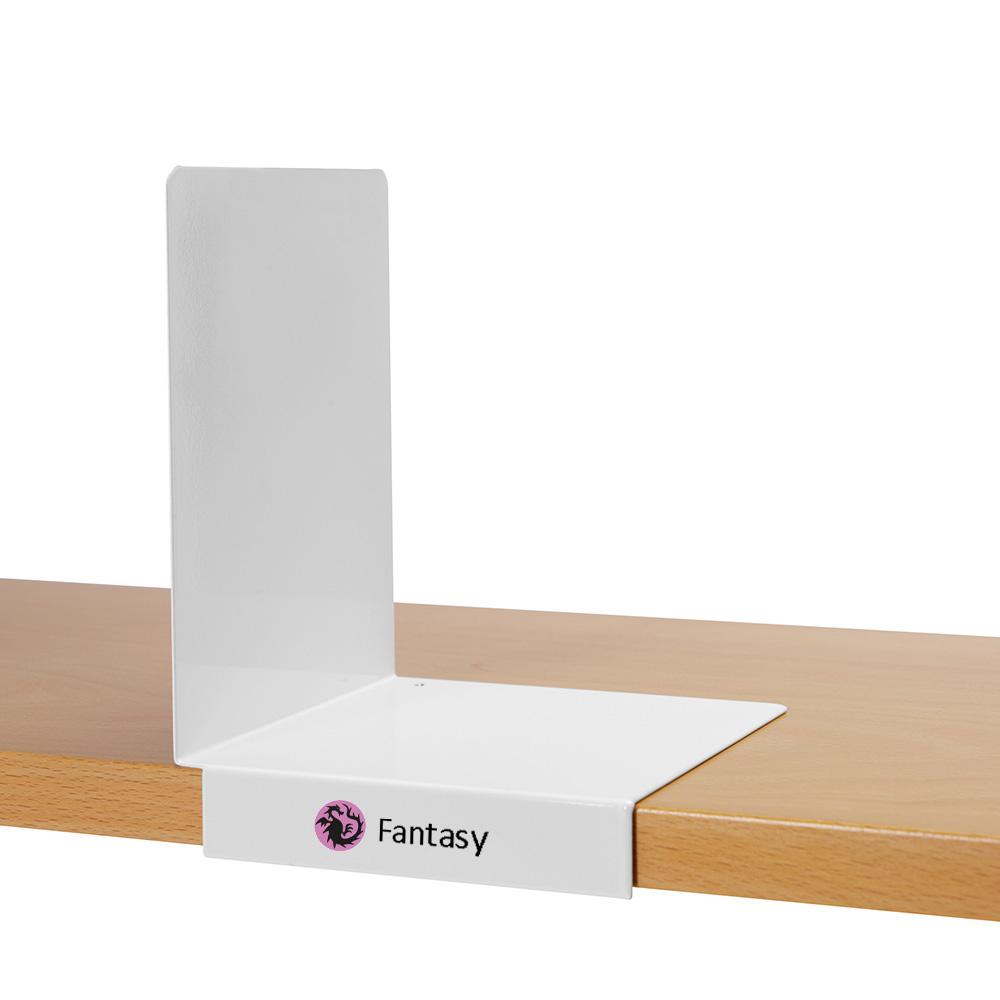 Die Bücherstütze bleibt stabil an ihrem Platz und die Vorderkante dient zur praktischen Beschilderung.