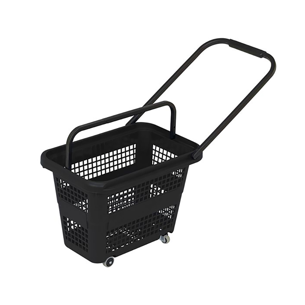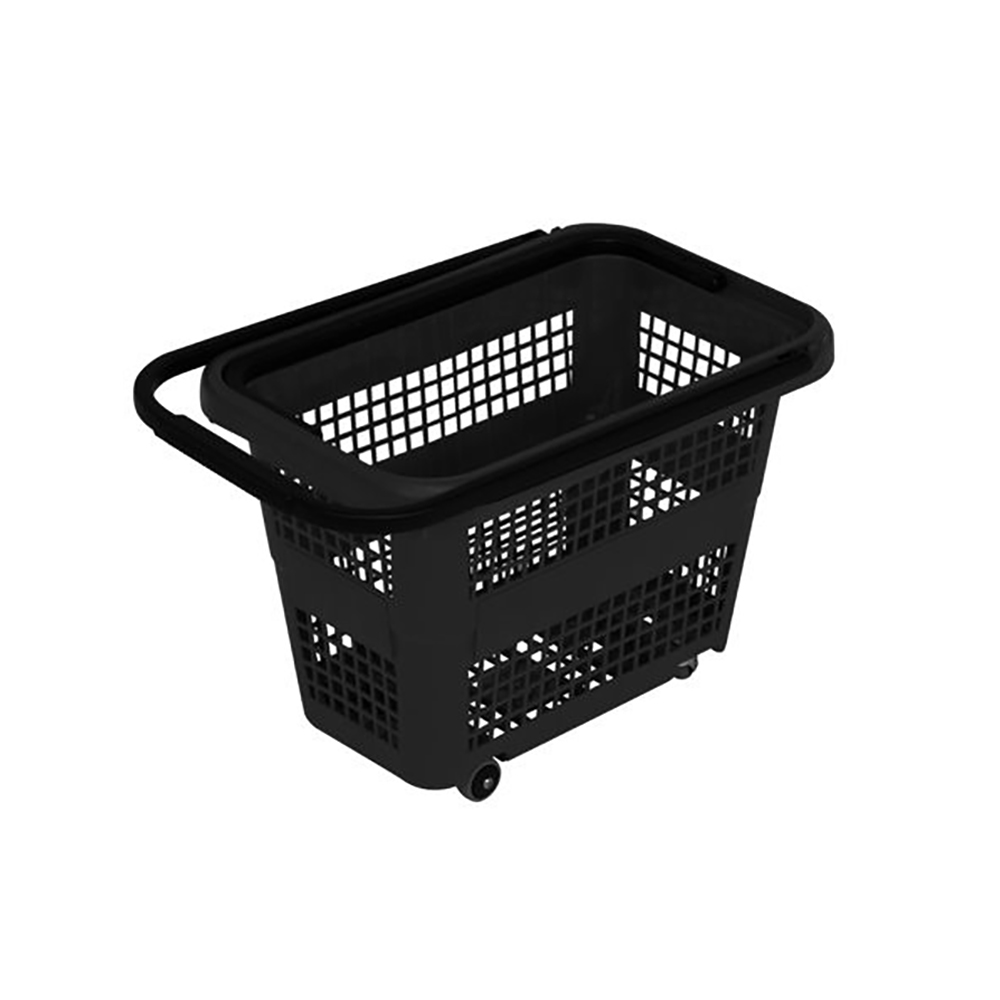 Leicht fahrbarer, stapelbarer Tragekorb mit Griff zum Anheben oder hinter sich herziehen.