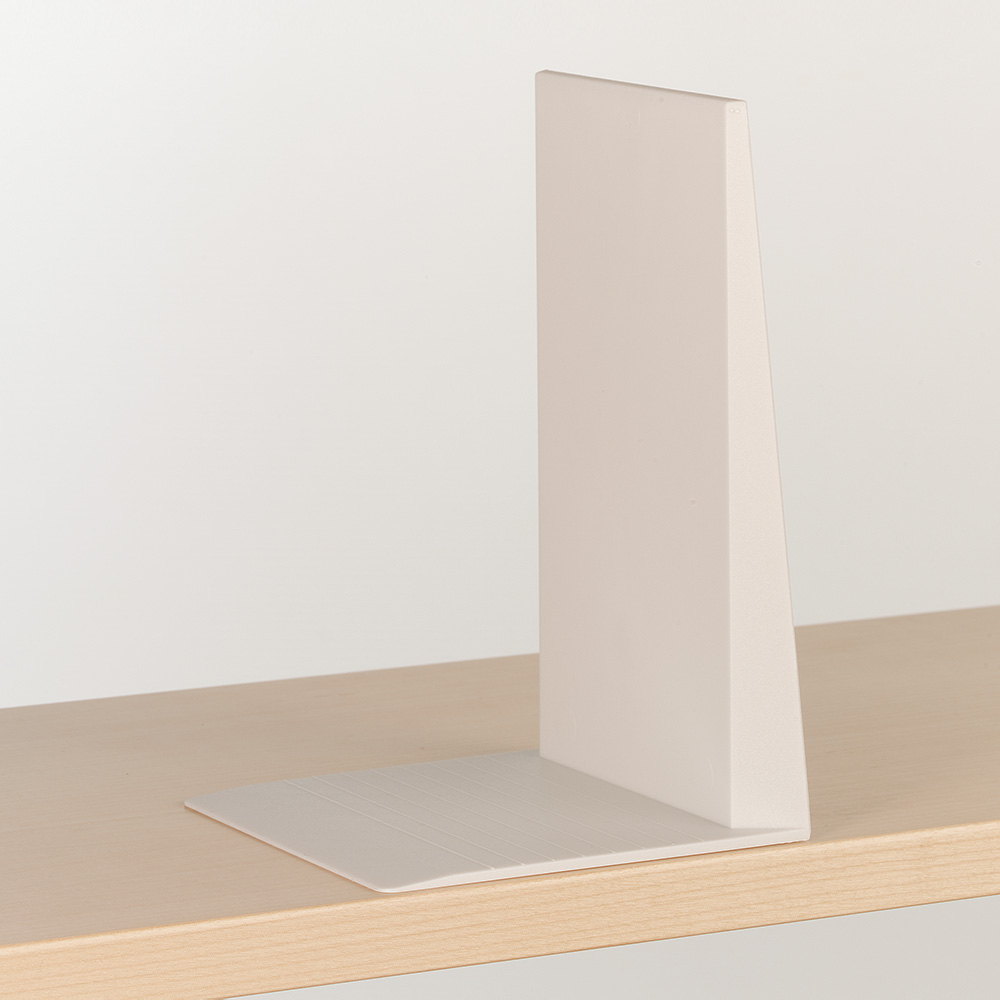 Stapelbare und gut zu ergreifende Buchstütze mit Gleitschutzklebeband und einer gerillten Oberseite für besseren Halt.
