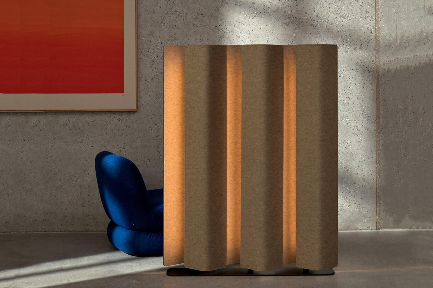 | Die Farbe der Trennwände beeinflusst den Charakter des Lichts; dunklere Textilien sorgen für eine gedämpftere Beleuchtung. | |